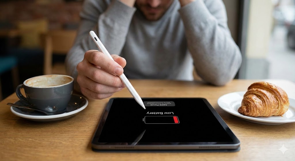 毎日使っていれば残量を意識しますが、私のように「たまに使う」スタイルだと、いざカフェでアイデアを書こうと思った瞬間に電池が切れているという事態が数回発生しました。「使いたい時に使えない」——これは、なかなかのストレスでした。